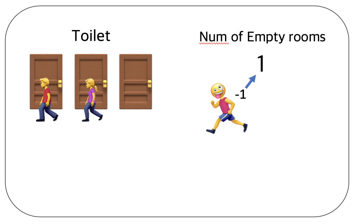 만약 당신이 화장실에 가고 싶다면 입구에서 빈 칸의 개수를 확인하고 빈 칸이 1개 이상이라면 빈칸의 개수를 하나 뺀 다음에 화장실로 입장해야 한다. 그리고 나올 때 빈 칸의 개수를 하나 더해준다.