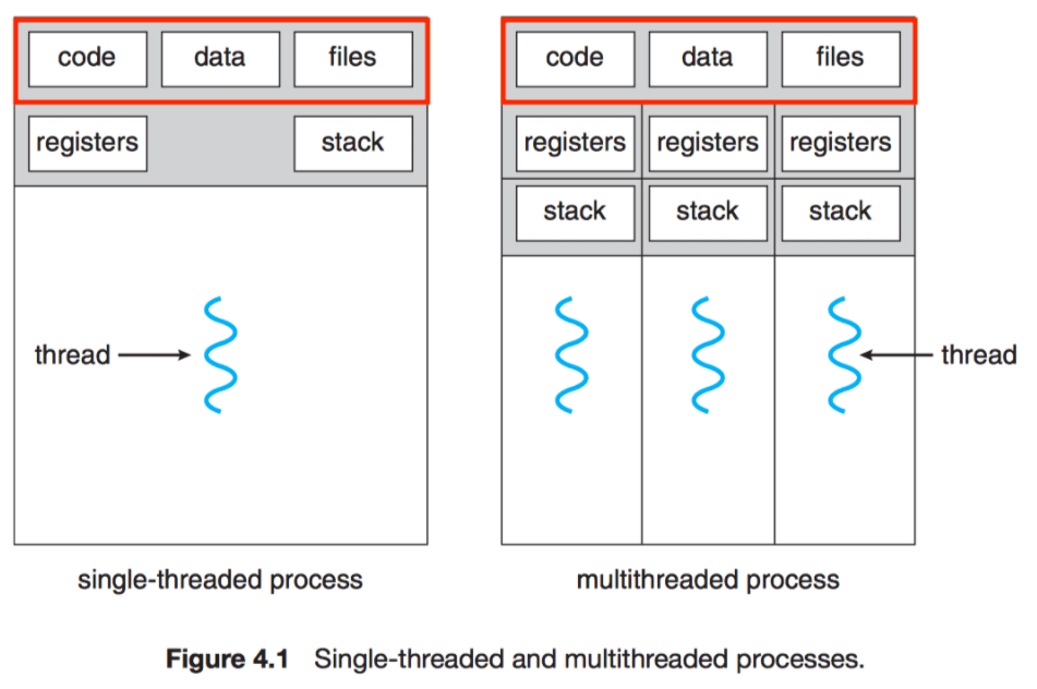 - 운영체제가 시스템 자원을 효율적으로 관리하기 위해 스레드를 사용한다.