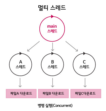 - 동시에 두 가지 이상의 루틴을 수행할 수 있다.