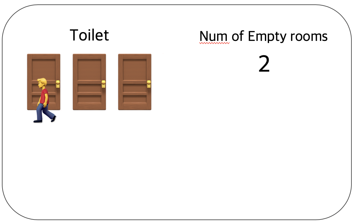 사람들은 나오면서 빈 칸의 개수를 1씩 더한다. 그리고 기다리던 사람은 이 숫자에서 다시 1을 뺀 다음 화장실로 돌진한다.