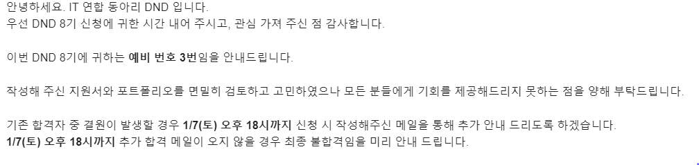 바로 어제인 1월4일 오후에 DND 8기 결과가 나왔다.