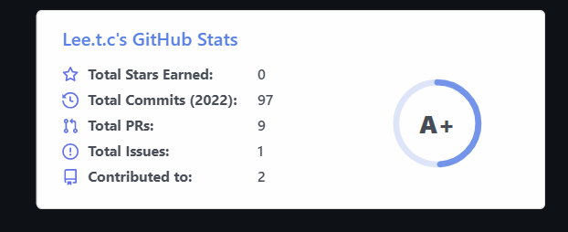 자신의 총 커밋수,풀리퀘스트수,이슈생성,한 프로젝트에 기여한수등 여러가지정보가 한눈에 쉽게보이는 프로필을 보여줄수있는 API입니다.