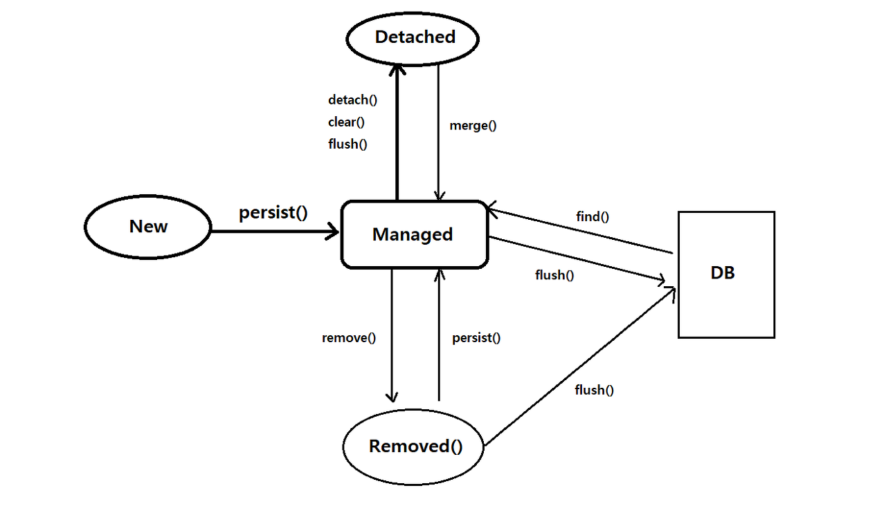 우선 JPA에서는 엔티티의 생명주기를 크게 4가지로 관리한다.