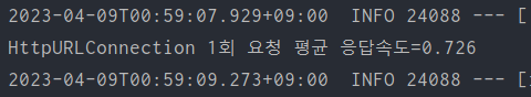 System.out.println("HttpURLConnection 1회 요청 평균 응답속도="+(double) ((hucEnd-hucStart)/1000.0));