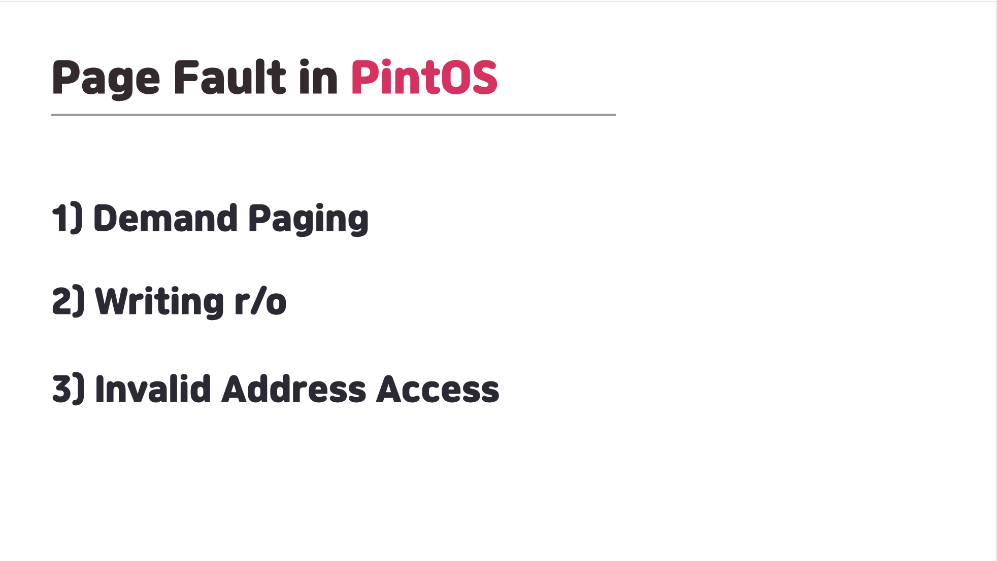 이번 핀토스 프로젝트 3에서는 페이지 폴트를 다뤄야 하는 상황이 많았는데, 해당 Case들을 전부 다뤄보고자 한다.