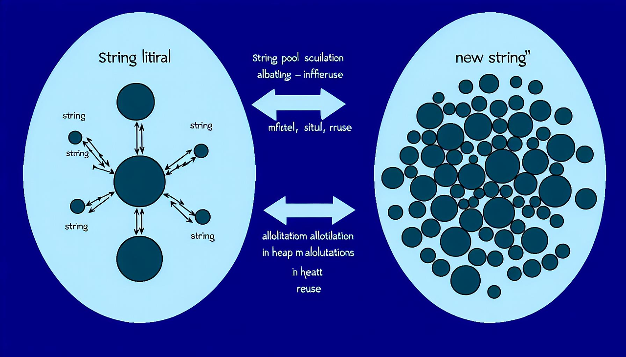 자바는 문자열 리터럴을 String Pool 내에 저장하고 동일한 문자열 리터럴에 대해서는 하나의 참조를 재사용하기 때문인데 예를들어 아래와 같은 코드가 있다고 생각해보자